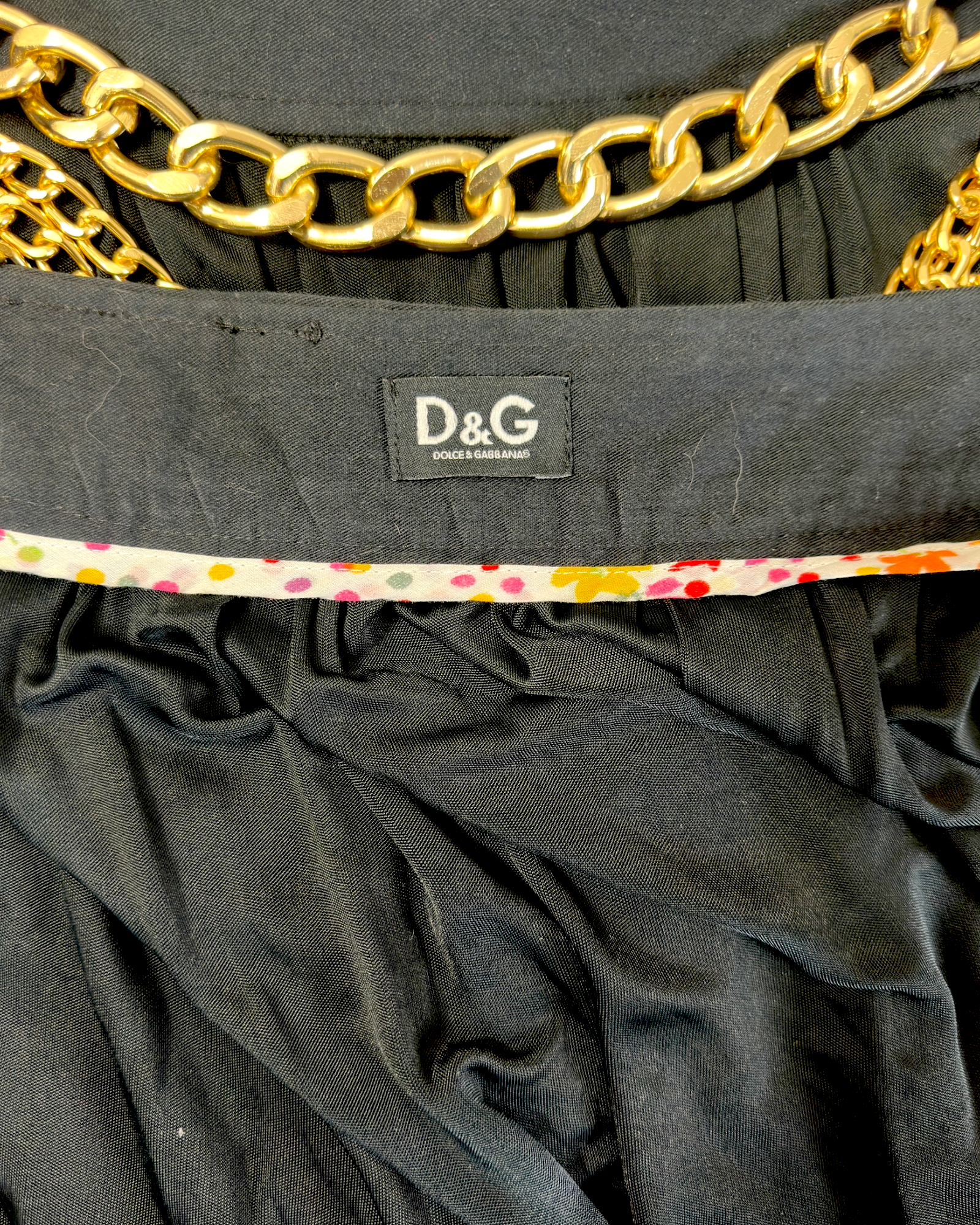 🖤 Dolce & Gabbana – Jupe Noire – Chaînes Dorées – Silhouette Plissée