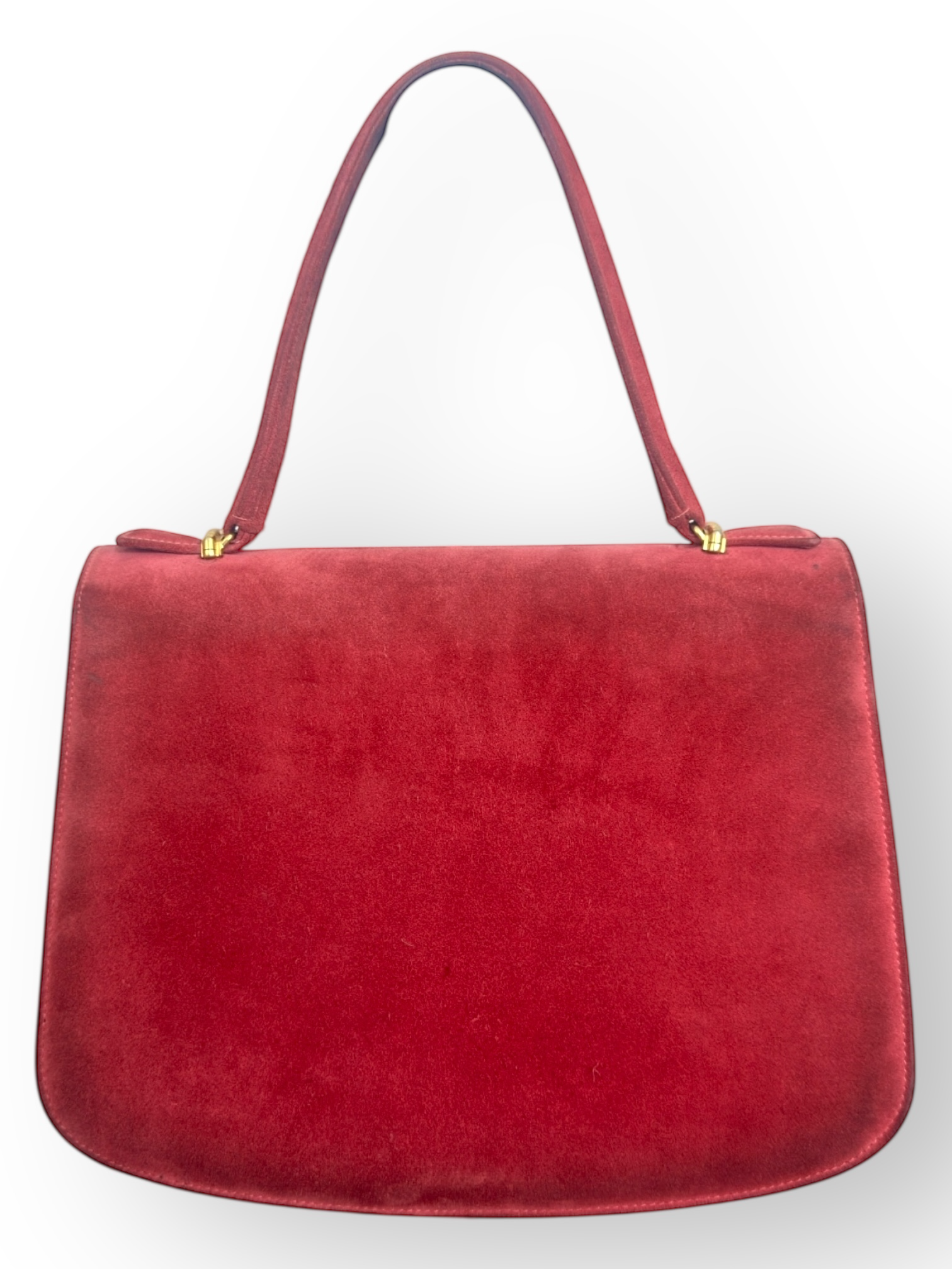 🖤 Grieder – Sac en Daim Framboise & Fermoir Doré – Made in Switzerland – Circa 1965