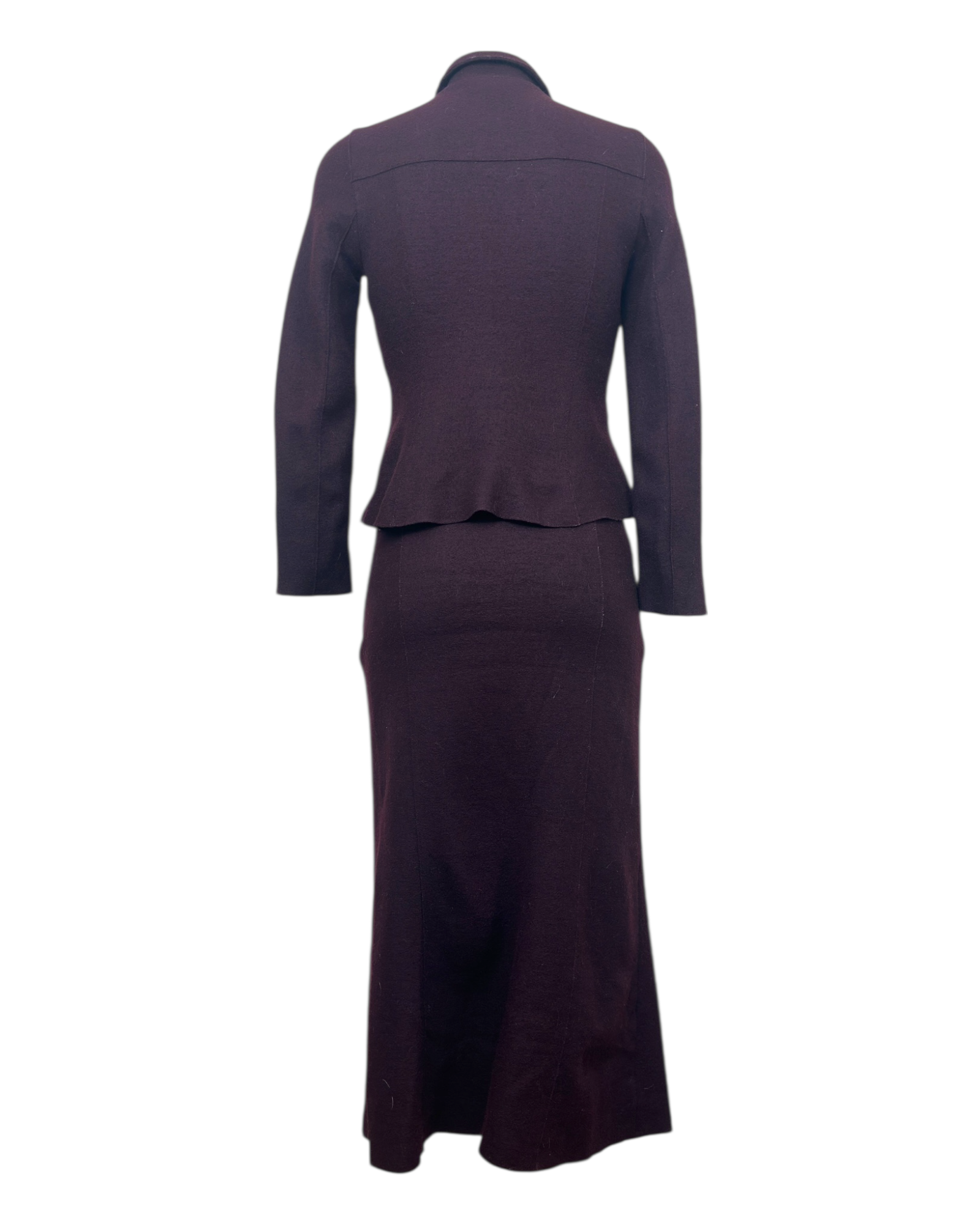 Pablo Gérard Darel – Ensemble Jupe & Veste – Laine Bouillie Chocolat Aubergine – Années 1990