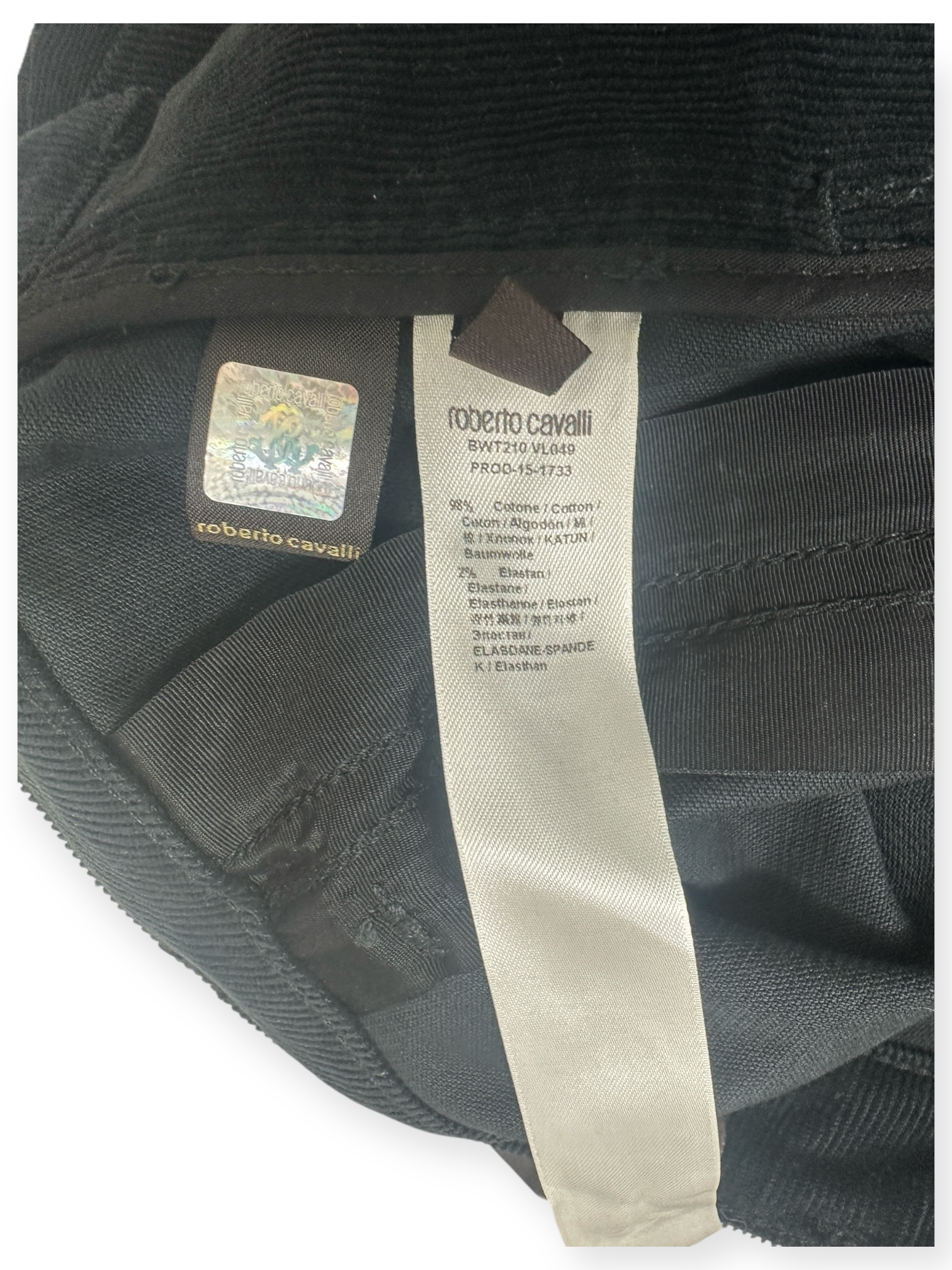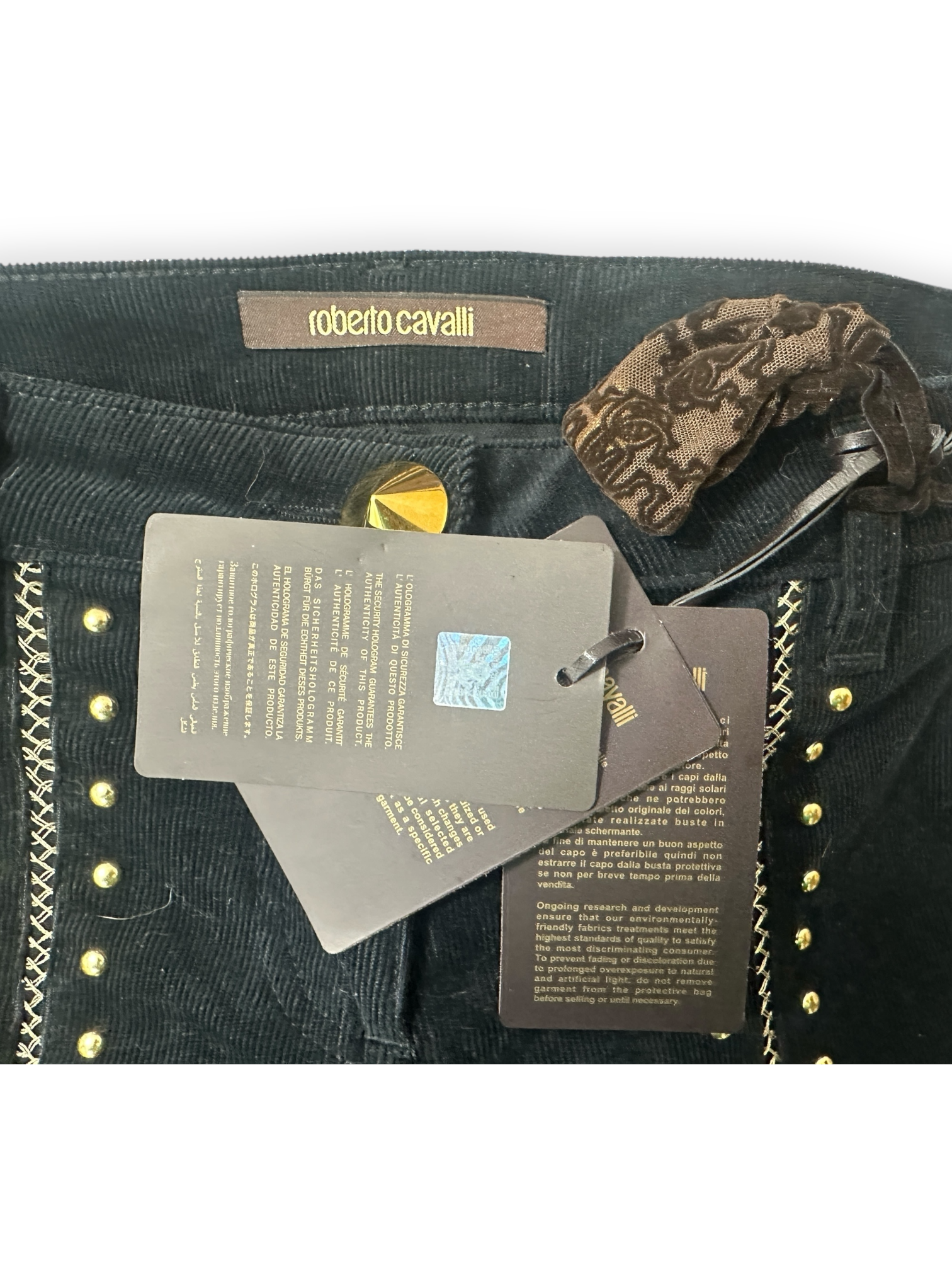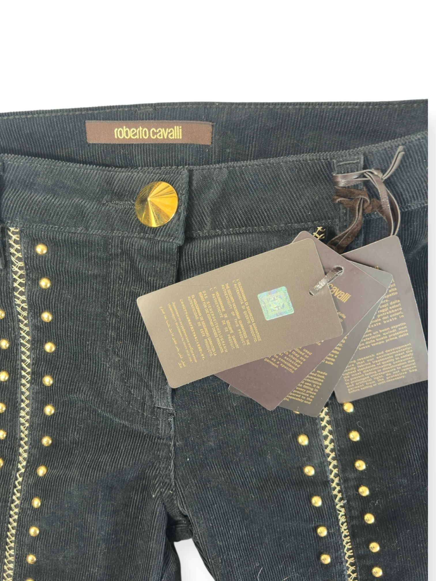 🖤 Roberto Cavalli – Pantalon Slim en Velours Noir à Clous Dorés – Made in Italy – Années 2000
