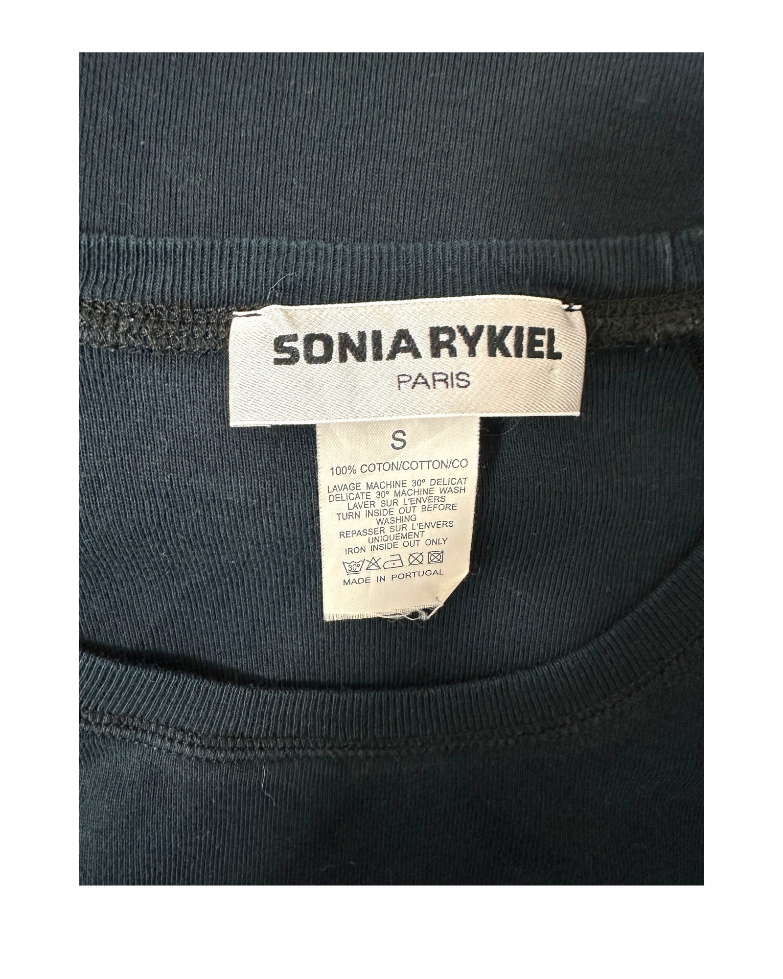 ⚫ Icônique et espiègle, ce T-shirt culte signé Sonia Rykiel célèbre l’esprit libre et ironique de la créatrice parisienne.