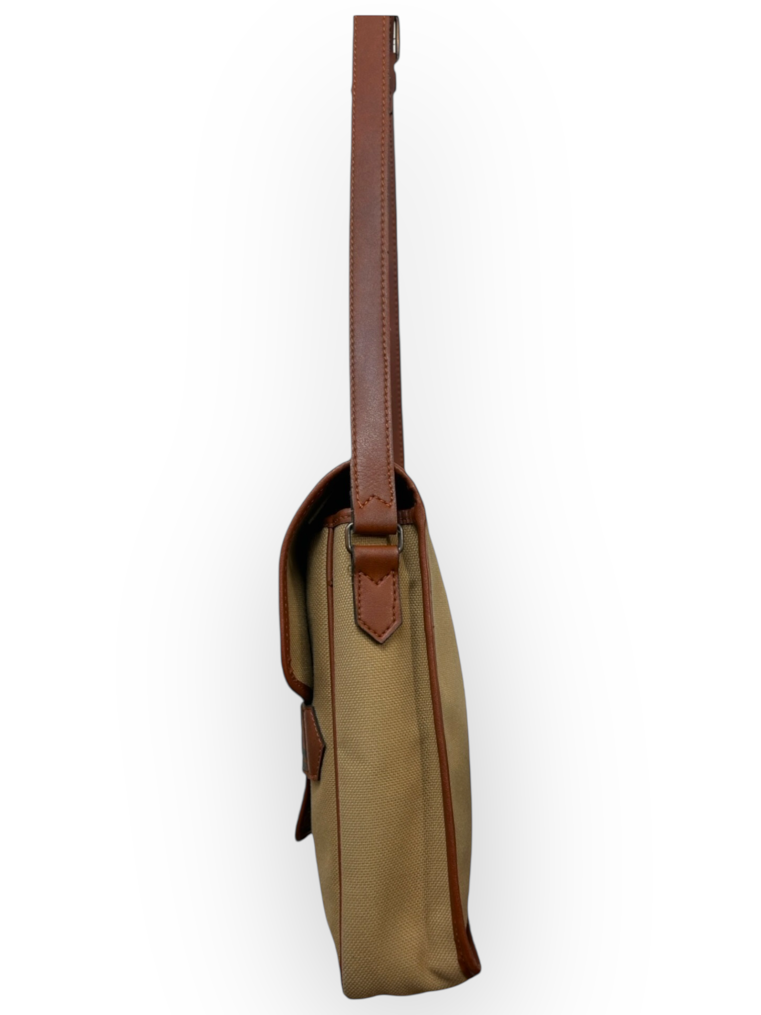 Yves Saint Laurent – Sac Messager “Greek” – Toile Beige & Finitions Vinyle