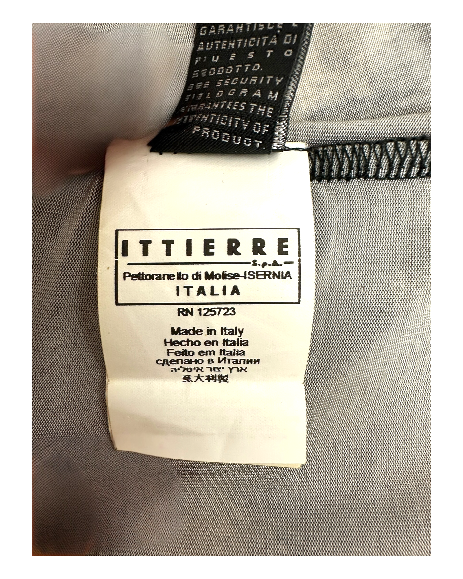 La taille haute est soulignée par une ceinture noire contrastante, et la fermeture zippée au dos assure un maintien net. Confectionnée en Italie, cette pièce associe polyester et élasthanne pour une tenue souple mais affirmée. L’étiquette ITTIERRE S.p.A. et le code Y0736172490 garantissent son authenticité. Une jupe qui ne se contente pas d’être imprimée : elle impose une allure.