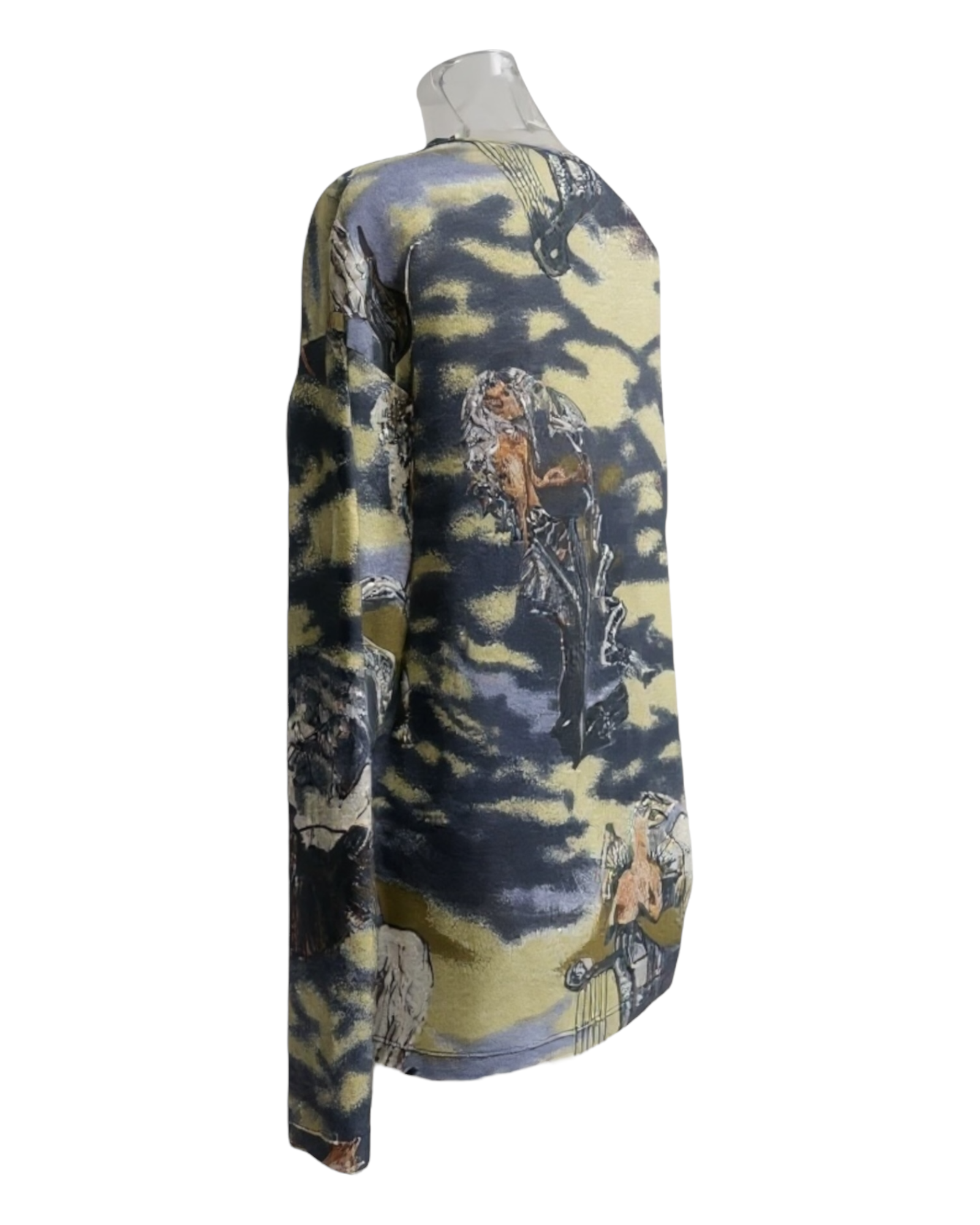 ⚫ Détails du produit : • Coupe droite légèrement ample • Manches longues, col rond classique • Tissu doux et fluide, agréable sur la peau • Imprimé narratif : douze figures mythologiques inspirées du zodiaque • Finitions soignées, esprit atelier • Étiquette intérieure Maillaparty