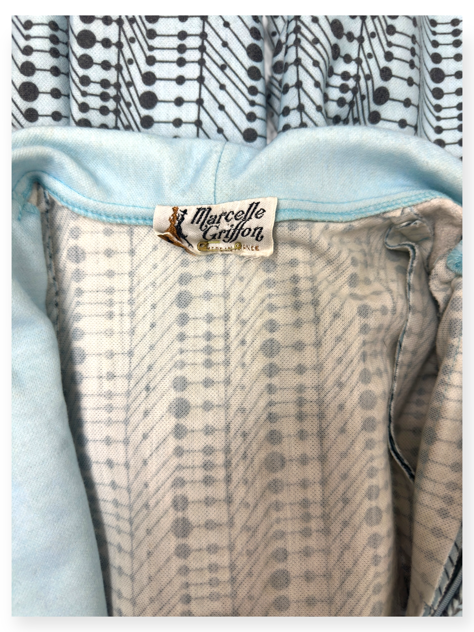 Une robe rare, choisie pour sa présence, son graphisme lumineux et sa poésie vintage.