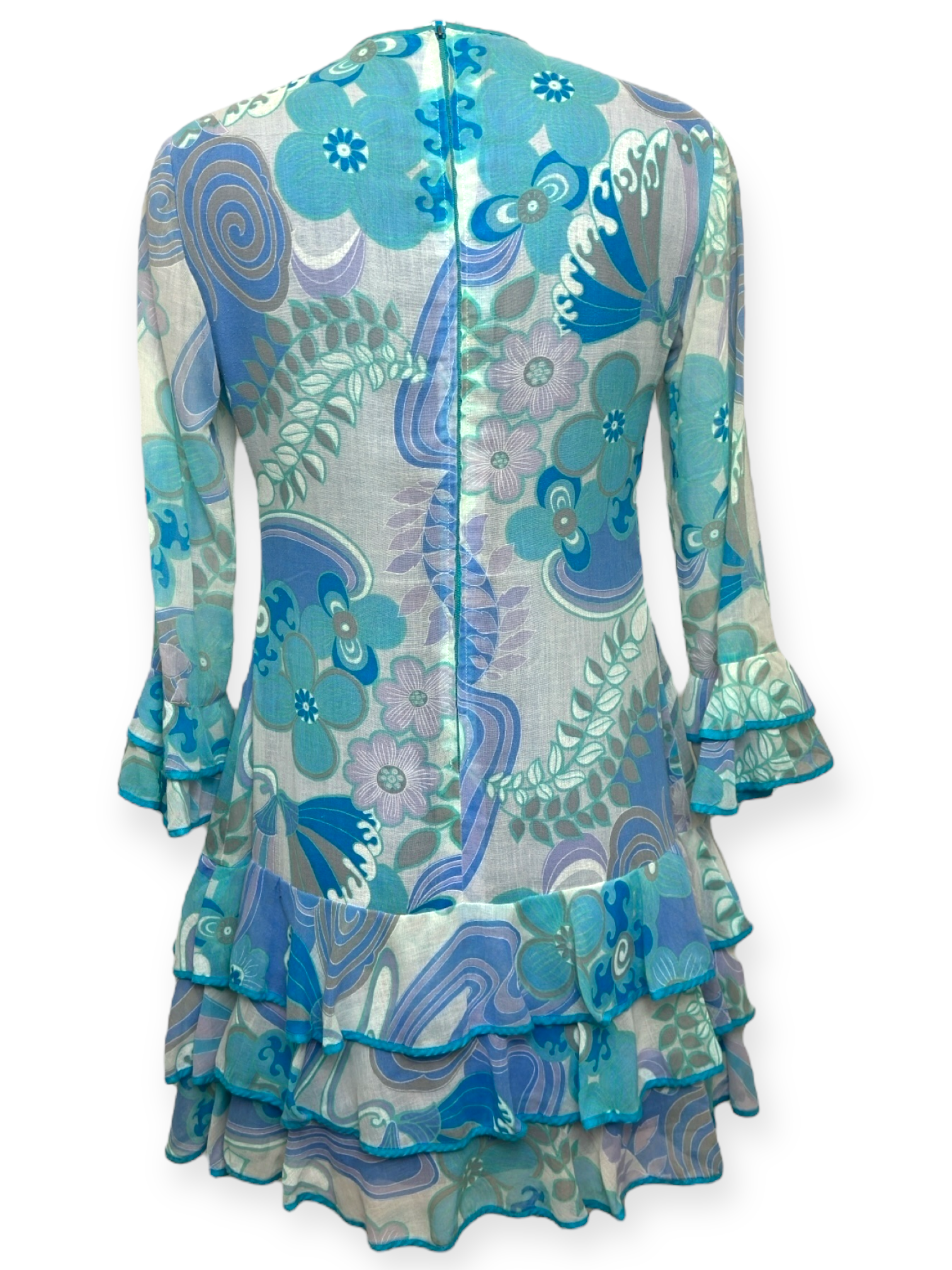 ⚫ Vibrante, légère et profondément expressive, cette robe vintage incarne l’esprit libre et visuel des années 70 — entre teintes lagon, motifs psychédéliques et silhouettes virevoltantes.